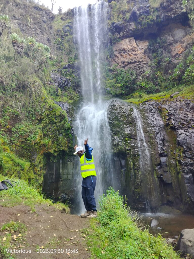 The 14 km round trek, rated moderate and suitable for all classes of hikers, takes you through breathtaking scenery, reaching a maximum elevation of 3,455m ASL. Along the way, you’ll enjoy panoramic views of Mugi Hills, before arriving at Lake Ellis—a pristine alpine lake whose tranquil waters mirror the snow-capped peaks of Mount Kenya. From there, the trail winds through dense forests and meandering streams to the majestic Nithi Falls, where cascading waters tumble dramatically against rugged cliffs.