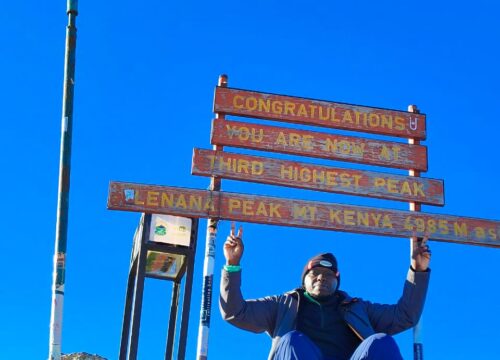 • The Predawn attempt of the summit starts at 03:00 am. We hike for about four to six hours up to Point Lenana (4985m), the hiker’s summit, arriving there in time to watch the African sunrise.